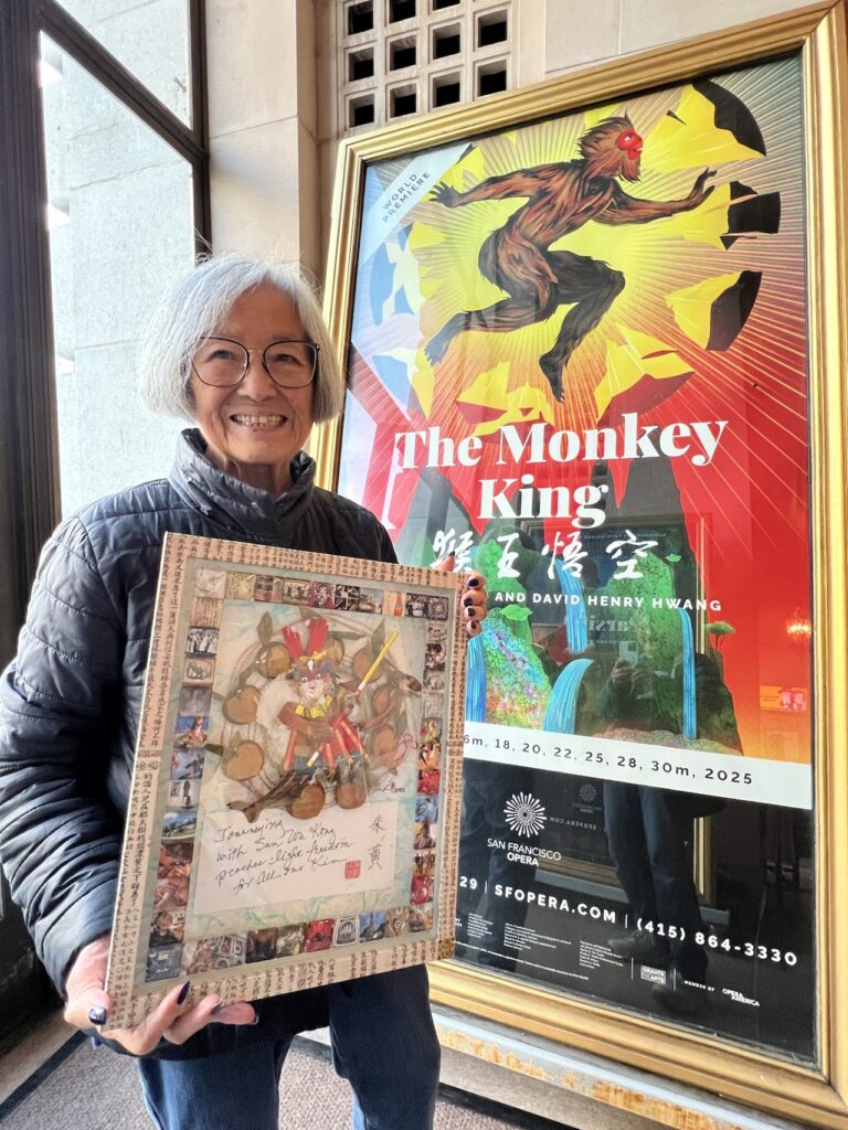 We delivered our collage to the Opera for installation in the Art Builds Community Monkey King art exhibition. Then Nellie and I were able to enjoy our art on display at the final performance of 2025 world premiere of The Monkey King at San Francisco Opera on Sunday, November 30, 2025.