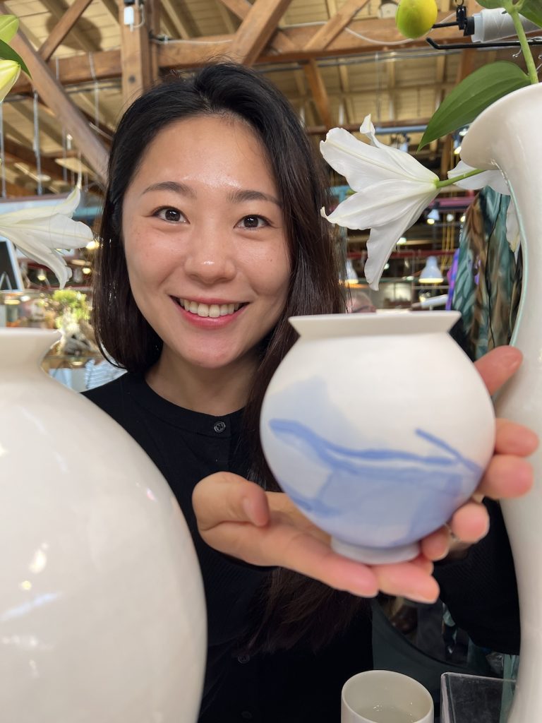 This small Moon Jar was made by Jenna Borum Kim, an artist based in British Columbia, Canada. Andi was at Granville Market in Vancouver when she met Jenna, who crafts contemporary ceramics inspired by nature. Jenna shared the tradition of placing wishes in the moon jar. See more of Jenna’s work on Instagram @dogi_jagi.